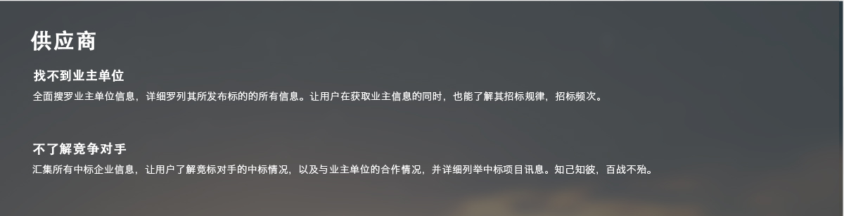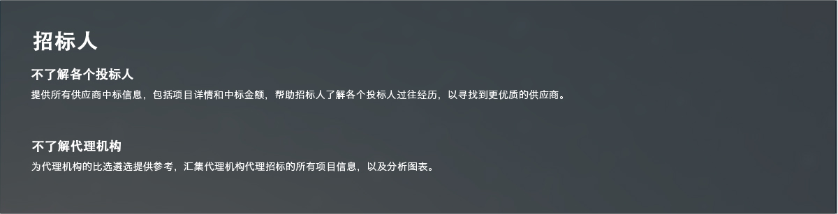 無論是招標單位、供應商,還是招標代理機構,都可滿足其具有針對性 的需求。